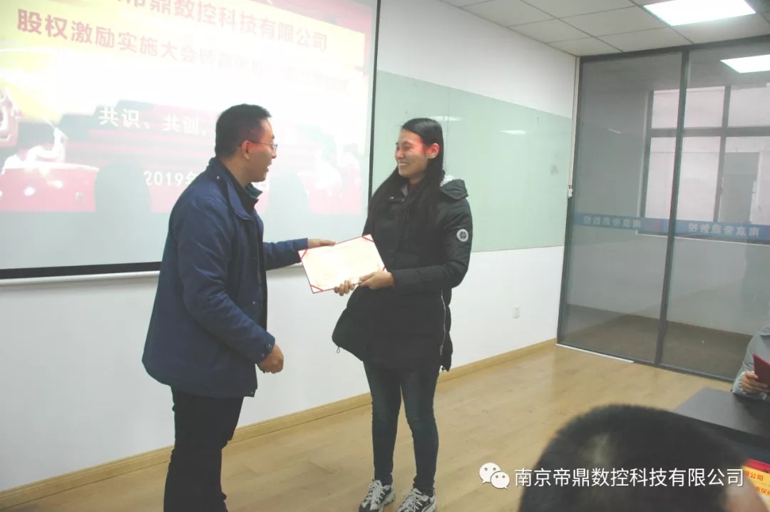 公司副總經(jīng)理兼財務(wù)總監(jiān)發(fā)表講話。她表示,股權(quán)激勵方案的成功落地實(shí)施,體現(xiàn)了公司上下一心、齊心協(xié)力的態(tài)度與決心,標(biāo)志著公司有能力、有實(shí)力將激勵措施付諸行動并取得成果。相信大家今后一定能為了共同的理想和使命,繼續(xù)團(tuán)結(jié)一致、攜手前行,共創(chuàng)南京帝鼎美好未來!