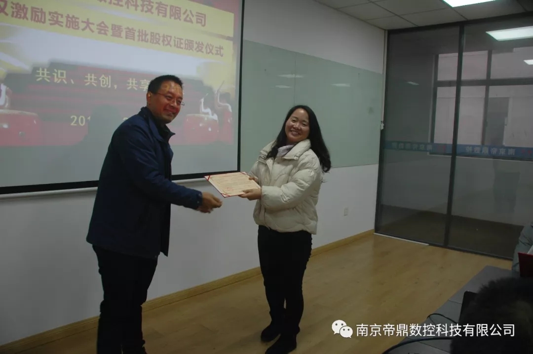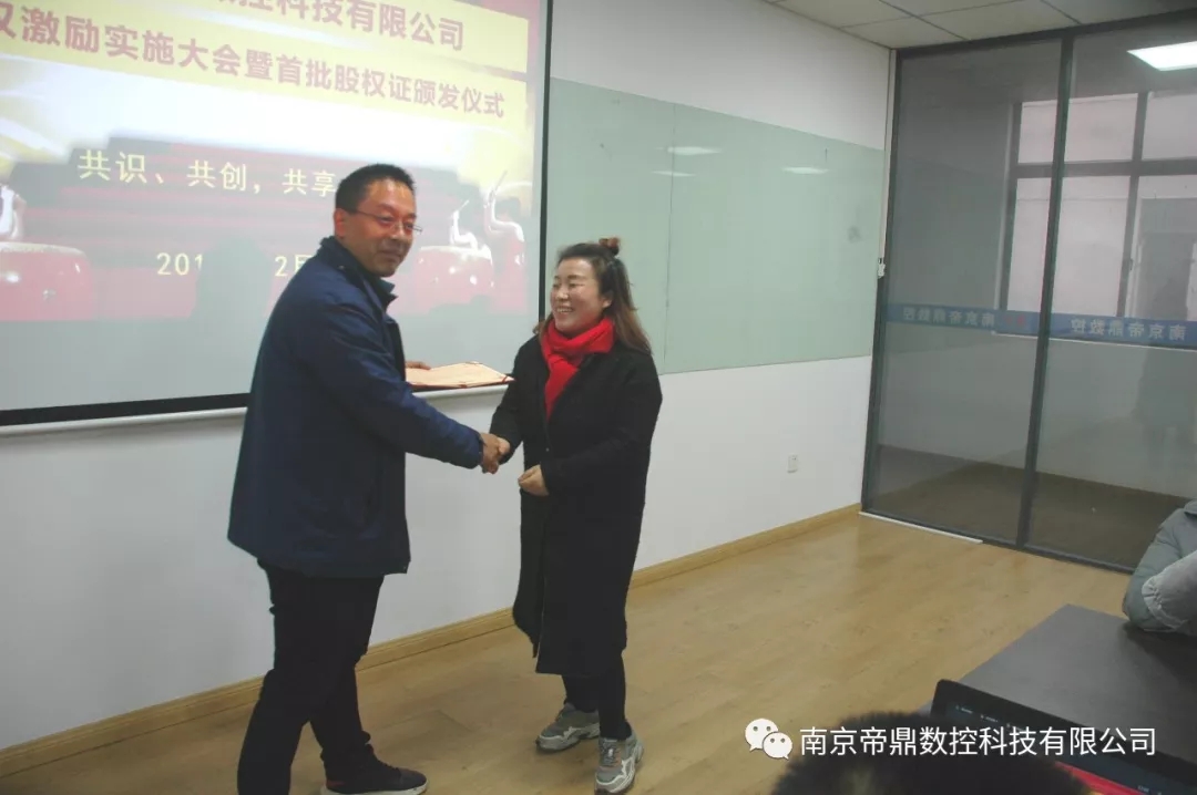 他表達(dá)了對公司新晉股東的歡迎與勉勵。公司的發(fā)展離不開核心人員的努力,根據(jù)公司愿景,為完成各項(xiàng)戰(zhàn)略目標(biāo),公司將大力推進(jìn)人才戰(zhàn)略,保持核心技術(shù)、生產(chǎn)、銷售等人員穩(wěn)定。本次股權(quán)激勵的實(shí)施,既是公司與員工分享企業(yè)發(fā)展成果的舉措,也是激勵大家與公司攜手并肩、奔赴更加宏偉目標(biāo)的起點(diǎn)。他希望在各位新晉股東共同努力,群策群力,共謀南京帝鼎發(fā)展大計。